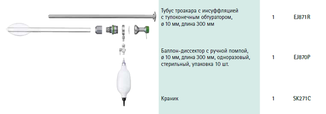 Використовується для створення робочого простору при виконанні тотальної екстраперітонеальної герніопластики (TEP-техніка). За допомогою роздування балона проводять диссекцію в предочеревинному просторі.
